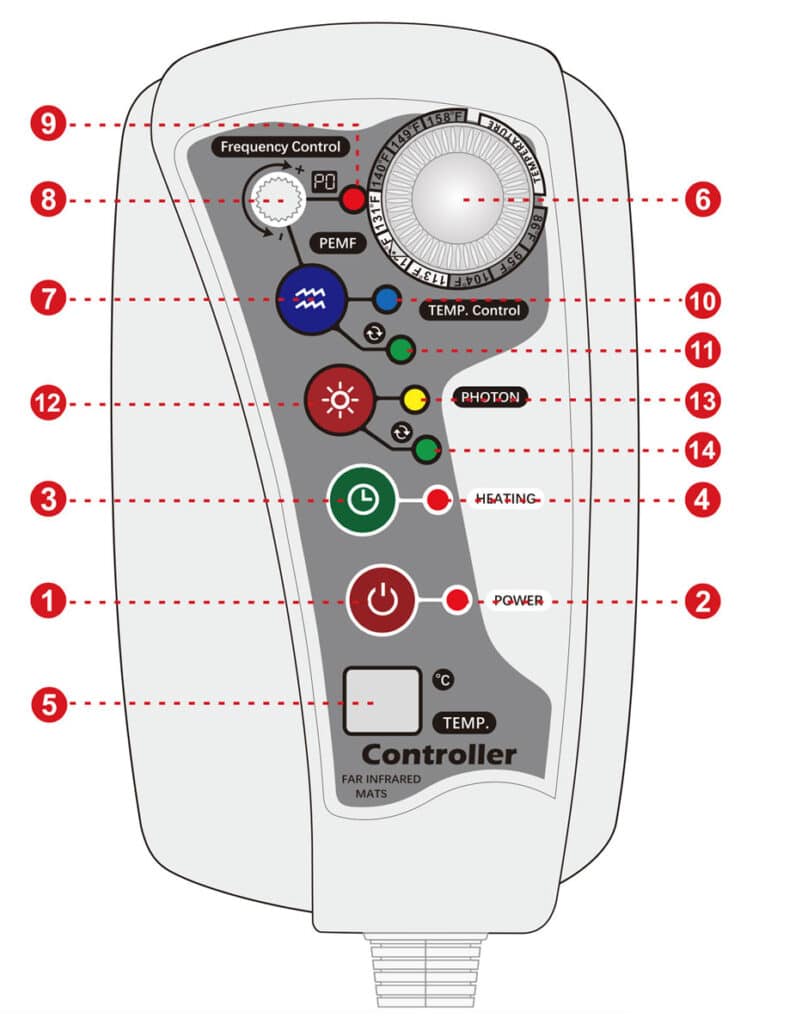Mit der innovativen Steuerungseinheit der Body Effects Kristallmatte (eine Weiterentwicklung der Amethyst Infratotmatte nach Karstädt) kann die Infrarot Tiefenwärme, die Ionen-Therapie, die pulsierende Magnetfeld-Therapie und die Biophotonen-Therapie programmiert werden..